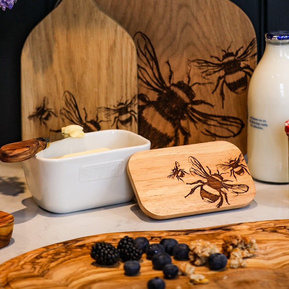 White Butter Dish - Bee