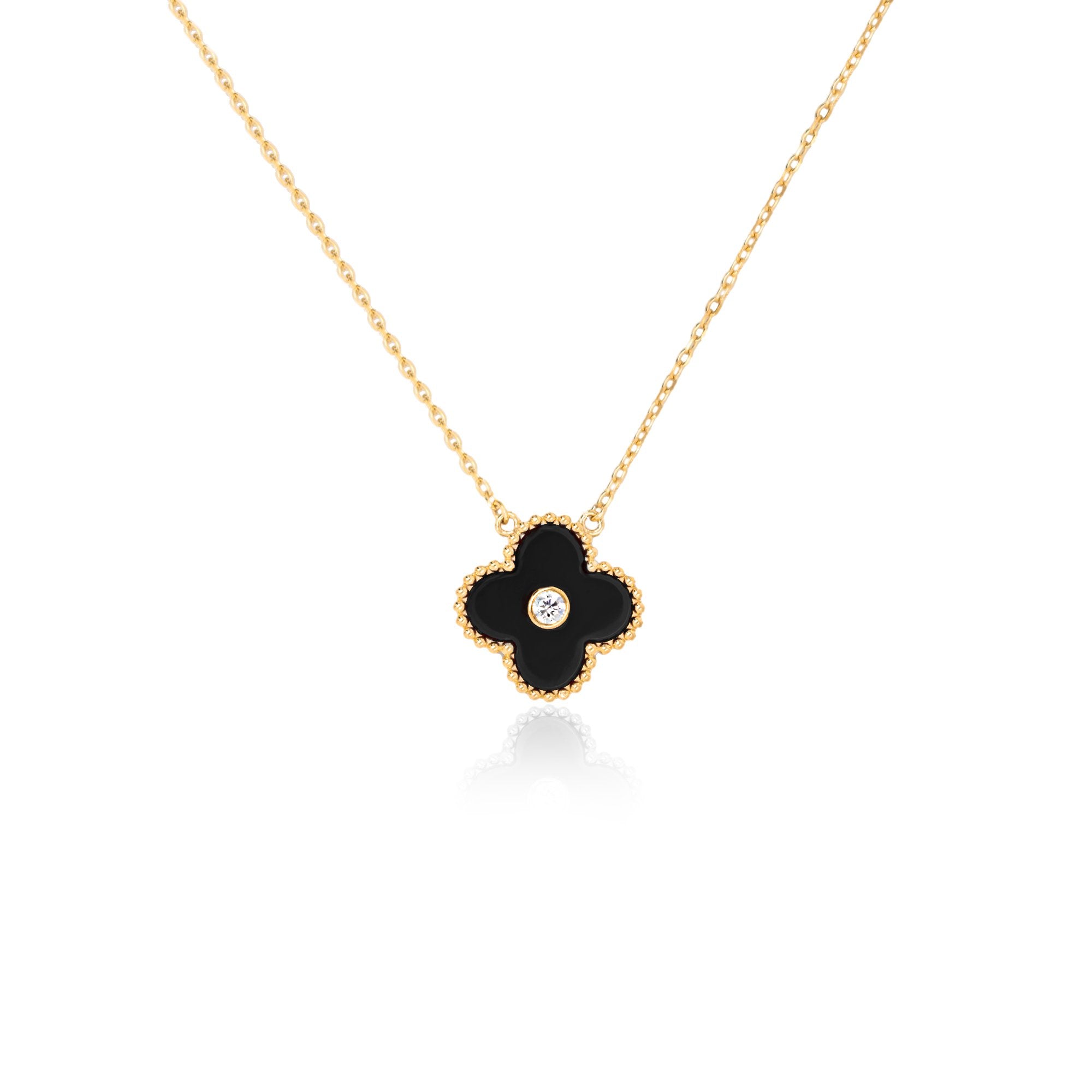 Sterling Silver Designer Inspired Vancleef Black Onyx with Center CZ Necklace
