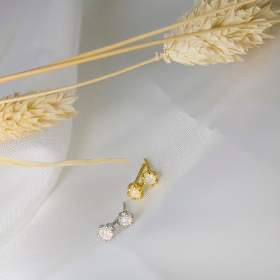 Sterling Silver 6 Prong White Opal Studs