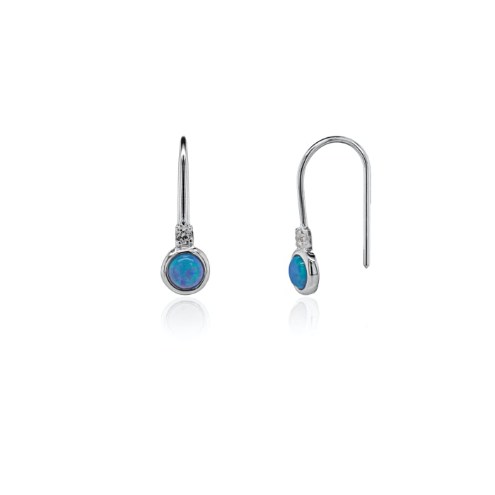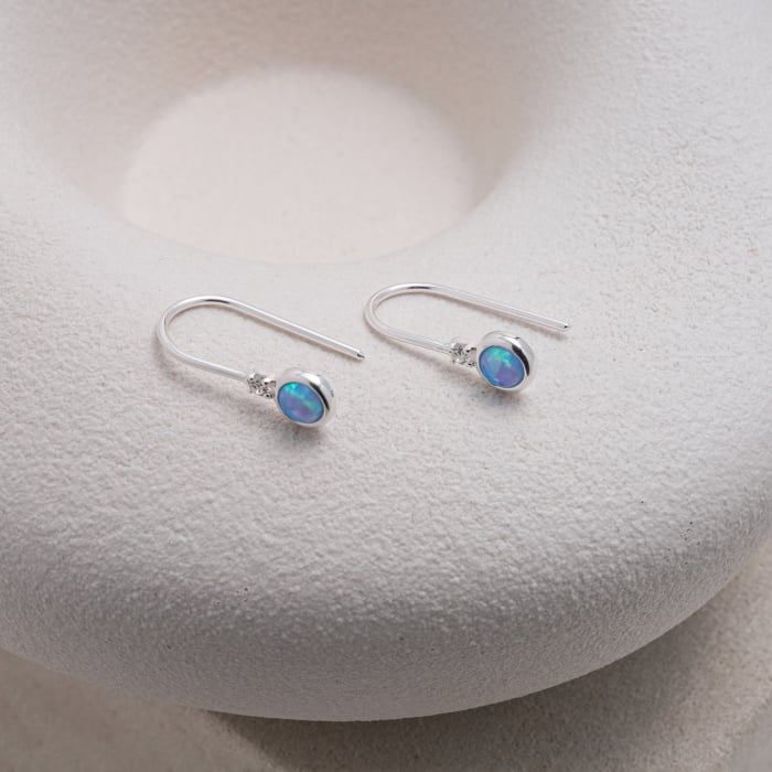Sterling Silver Bezel Set Blue Opal CZ Hook Earrings