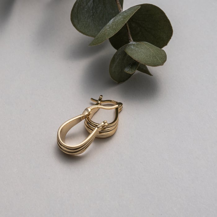 Sterling Silver Gold Vermeil Radiant Textured U-Shaped Huggies Earrings