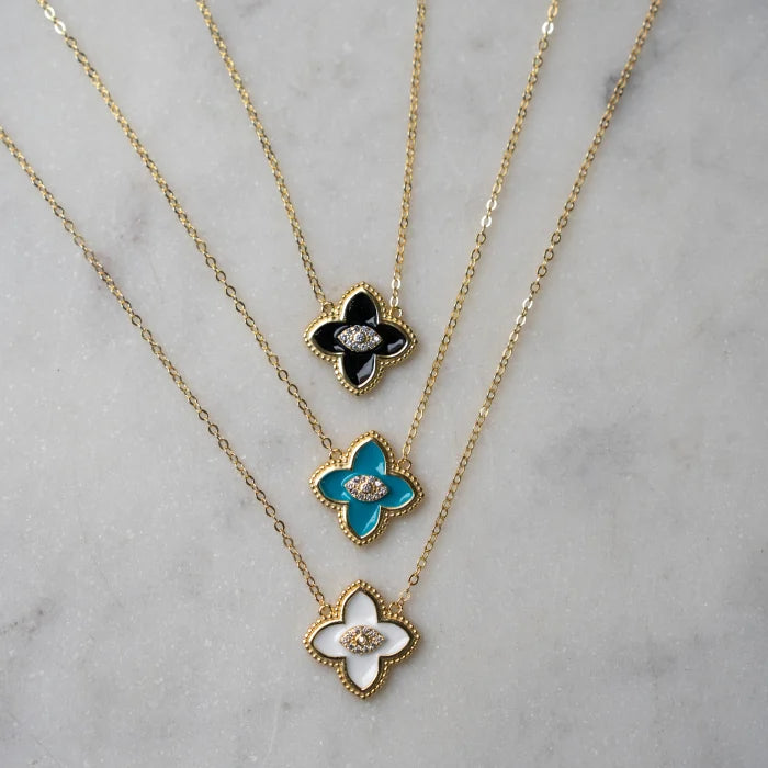 Sterling Silver Gold Vermeil Enamel CZ Evil Eye Clover Necklace, Turquoise
