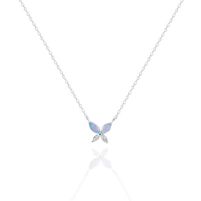 Sterling Silver CZ Blue Opal Butterfly Necklace