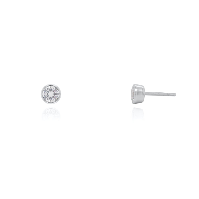 Sterling Silver 4mm Round CZ Bezel Stud Earrings