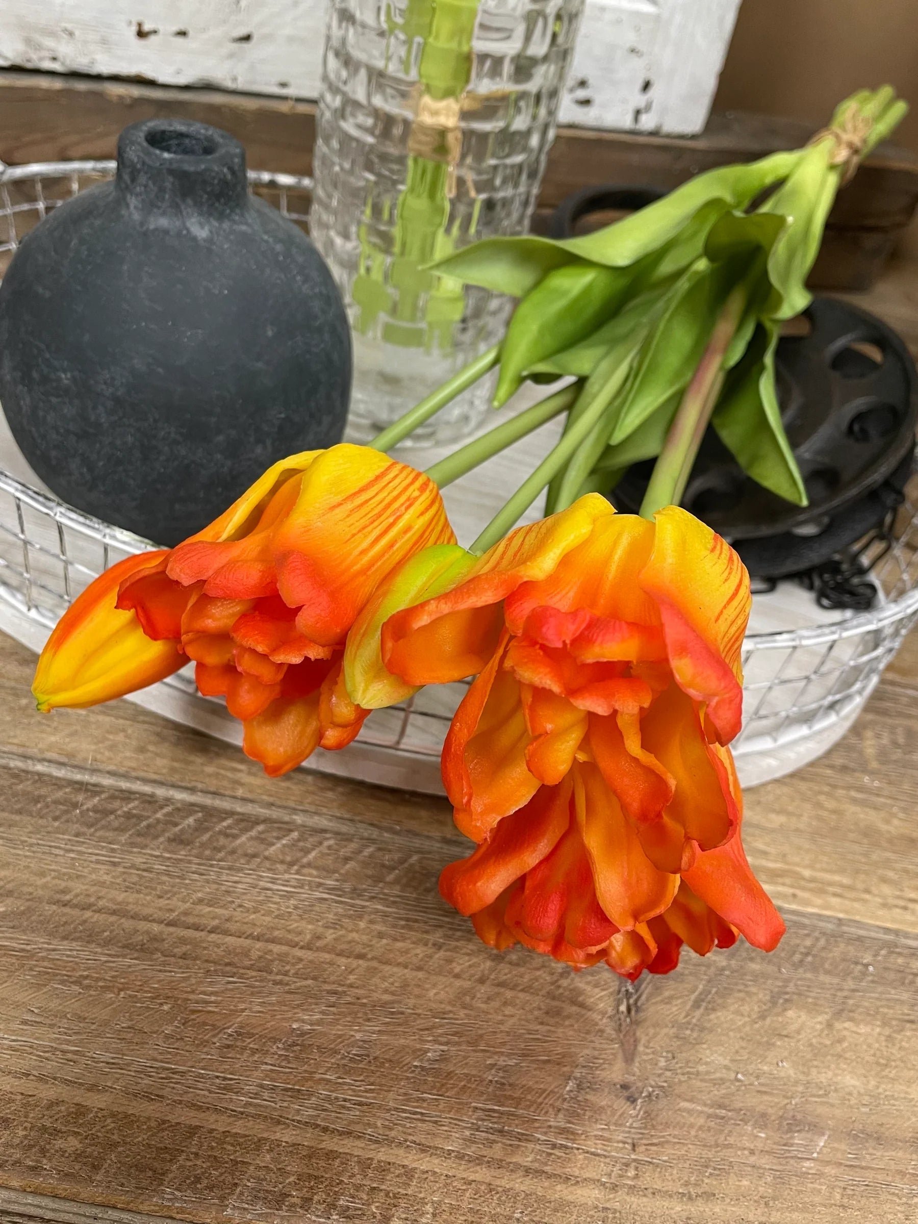 18" Fresh Touch Ruffled Parrot Tulip, Orange