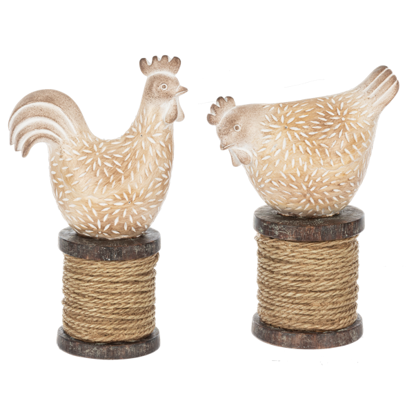 Hen on Spool Figurine, 2 Assorted