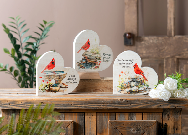 Watercolor Cardinal with Memorial Text Heart Message Block, 3 Assorted