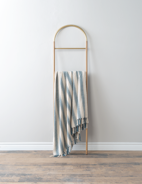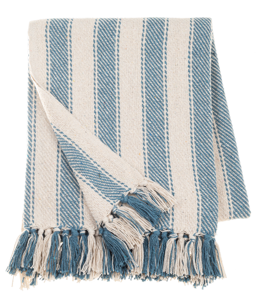 Blue Ticking Striped Woven Throw